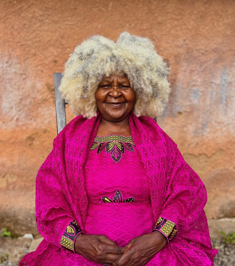 [Pictured here is my grandmother, confidently rocking one of our custom wigs]